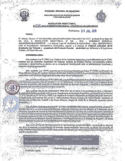 RESOLUCIÓN DIRECTORAL-APROBAR EL COMISO DEFINITIVO DE MADERA -FABIAN LEZAMA RUIZ