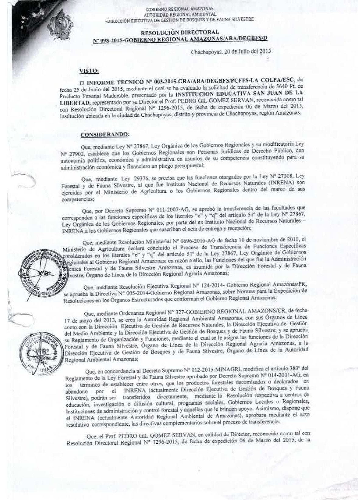 098-2015-GOBIERNO REGIONAL AMAZONAS/ARA/DEGBFS/D