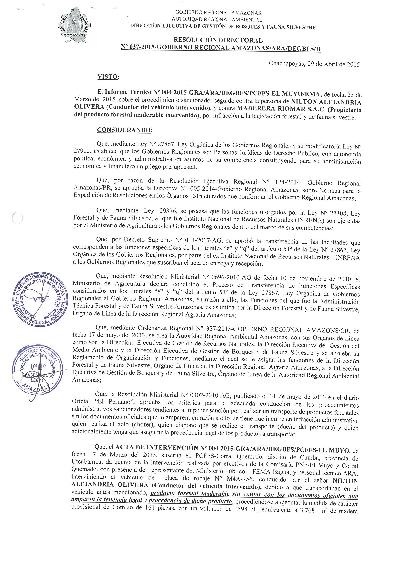 Procedimoento Sancionador seguido contra la persona de NILTON ALEJANDRIA OLIVERA (conductor del vehículo intervenido), y contra MADERERA RIOMAR S.A.C (propietario del producto forestal maderable intervenido); por Infracción a la Legislación Forestal y Fauna Silvestre.