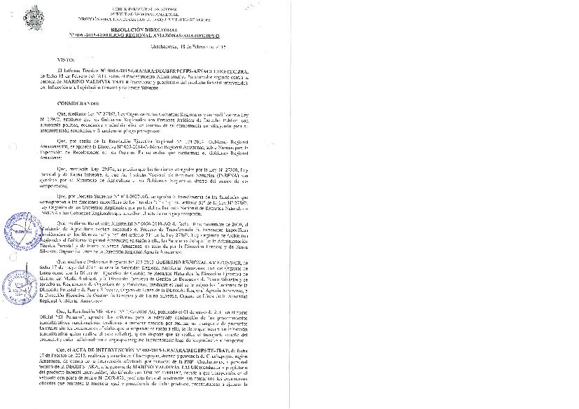 Procedimiento Administrativo Sancionador seguido contra la persona de MARINO VALDIVIA TAFUR (conductor y propietario del producto forestal intervenido), por la Infracción a la Legislacion Forestal y de Fauna Silvestre.