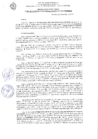 Procedimiento Administrativo Sancionador seguido contra las personas de RAMIREZ ZAVALETA GILMER (propietario del producto forestal intervenido), y ORTIZ PORTOCARRERO JUAN (conductor del vehículo intervenido), por Infracción a la Legislación Forestal y de Fauna Silvestre.