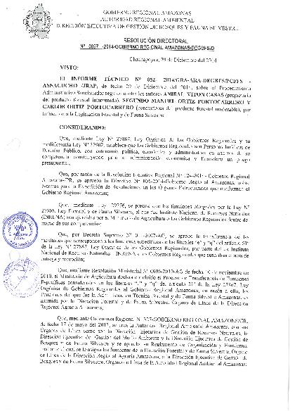 Procedimiebto Administrativo Sancionador seguido contra los señores de ANIBAL VITON CASAS (propieterio del producto forestal intervenido), SEGUNDO MANUEL ORTIZ PORTOCARRERO y CARLOS ORTIZ PORTOCARRERO (conductores del vehículo intervenido), por Infracción a la Legislación Forestal y de Fauna Silvestre.