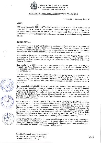 Procedimiento Administrativo Sancionador seguido contra los Sres. LELIER FERNANDEZ MALCA (condictor del vehículo intervenido), y JOSE FRANKLIN AGUILAR VELASQUEZ (propietario del producto forestal intervenido), por Infracción a la Legislación Forestal y de Fauna Silvestre.