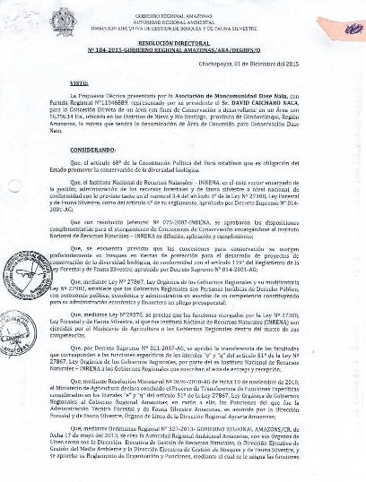 RESOLUCION DIRECTORIAL-APROBACION DE PROPUESTA TECNICA DEL AREA DE CONCESION PARA LA CONSERVACION DE DASE NAIN