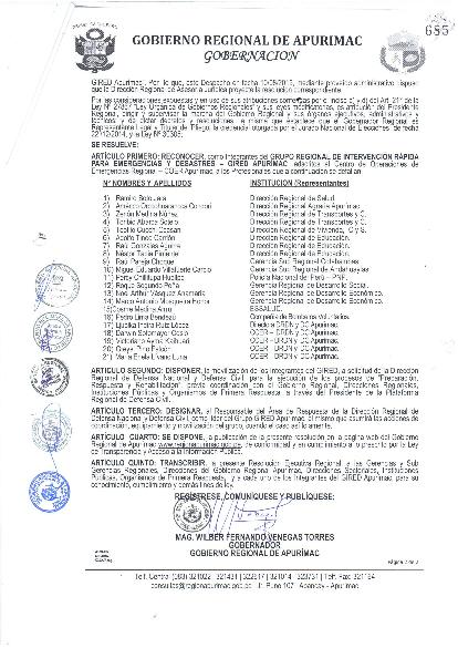 Resolucion EjecutivaRegiona que crea el grupo de intervencion rápida para emergencias y desastres