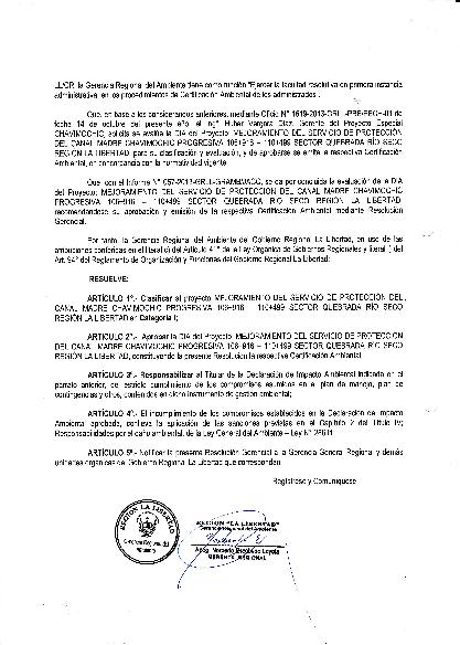 Evaluación de la DIA del Proyecto: MEJORAMIENTO DEL SERVICIO DE PROTECCIÓN DEL CANAL MADRE CHAVIMOCHIC PROGRESIVA 106+916 - 110+499 SECTOR QUEBRADA RIO SECO REGIÓN LA LIBERTAD.