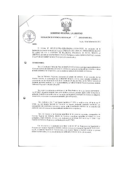 Evaluación de la Declaración de Impacto Ambiental del Proyecto: CREACIÓN DEL CANAL DE IRRIGACIÓN DE 30,4 KM DE LONGITUD EN EL DISTRITO DE BULDIBUYO, PROVINCIA DE PATAZ-REGION LA LIEBRTAD.