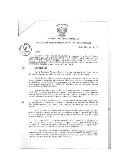 Evaluación de la DIA del proyecto: MEJORAMIENTO DEL SERVICIO EDUCATIVO EN LA I.E. N° 80825 - VIRGEN DEL CARMEN - DISTRITO POROTO - PROVINCIA TRUJILLO - REGIÓN LA LIBERTAD