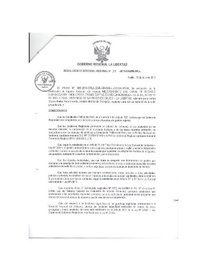 Evaluación de la Declaración de Impacto Ambiental del Proyecto: MEJORAMIENTO DEL CANAL DE REGADÍO HUARASCABRA - MOLLEPATA, TRAMO CAPTACIÓN RIO CHINCHANGO EL ALTO, DISTRITO DE MOLLEPATA, PROVINCIA DE SANTIAGO DE CHUCO - LA LIBERTAD