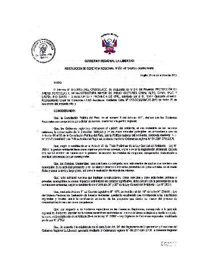 Evaluación de la DIA del Proyecto: PROTECCIÓN DE ÁREAS AGRÍCOLAS E INFRAESTRUCTURA MAYOR DE RIEGO SECTORES CANAL ALTO, CANAL BAJO Y UREÑA, RÍO SANTA - GUADALUPITO - PROVINCIA DE VIRÚ - LA LILBERTAD.