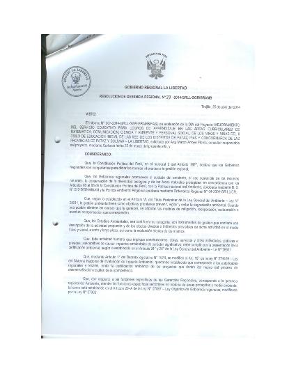 Evaluaciòn de la DIA del Proyecto: "MEJORAMIENTO DEL SERVICIO EDUCATIVO DE LA I.E. PARA LOGROS DE APRENDIZAJE EN LAS AREAS CURRICULARES DE: MATEMATICA, COMUNICACIÒN, CIENCIA Y AMBIENTE, PERSONAL SOCIAL DE LOS NIÑOS Y NIÑAS DEL II CICLO DE EDUCACIÒN INICIAL DE LA II.EE DE LOS DISTRITOS DE PATAZ, PIAS Y CONDORMARCA DE LAS PROVINCIAS DE PATAZ Y BOLIVAR-LA LIBERTAD"