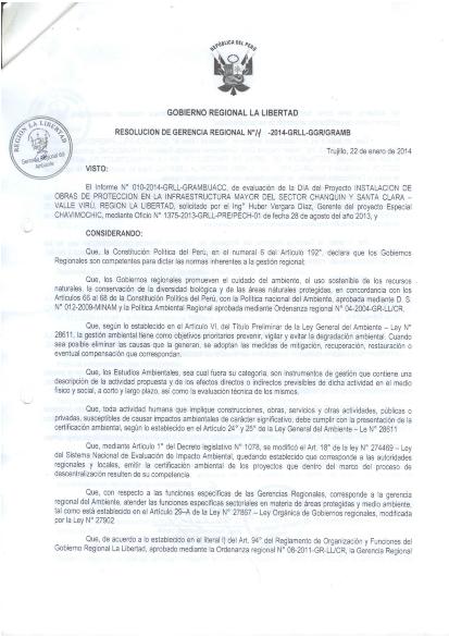Evaluación de la DIA del Proyecto: "INSTALACIÓN DE OBRAS DE PROTECCIÓN EN LA INFRAESTRUCTURA MAYOR DEL SECTOR CHANQUIN Y SANTA CLARA - VALLE VIRÚ - REGIÓN LA LIBERTAD"