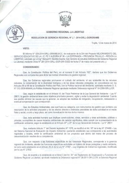 Evaluación de la DIA del Proyecto: "MEJORAMIENTO DEL SERVICIO EDUCATIVO DE LA I.E. FE Y ALEGRIA N° 36 - LA ESPERANZA - PROVINCIA DE TRUJILLO - LA LIBERTAD"