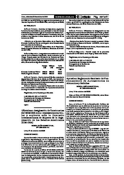 Resolución Ministerial que Aprueban Reglamento Sanitario de Funcionamiento de Autoservicios de Alimentos y Bebidas