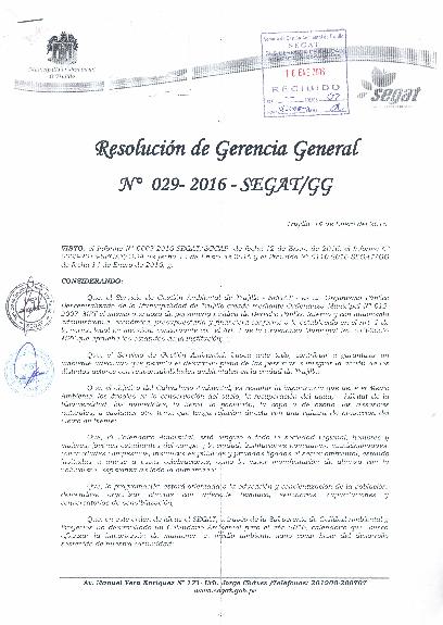 La Resolución de Gerencia General Nº 029-2016-SEGAT/GG que aprueba el Calendario Ambiental del SEGAT para el año 2016, el cual se encuentra adjuntado por fechas y meses en el presente documento. Entre las fechas más destacadas del calendario ambiental son: La Hora del Planeta(19 de marzo), Día de la Tierra(22 de abril), Día Internacional de la Diversidad Biológica( 22 de mayo), Día Mundial del Ambiente (05 de junio) y entre otras fechas.