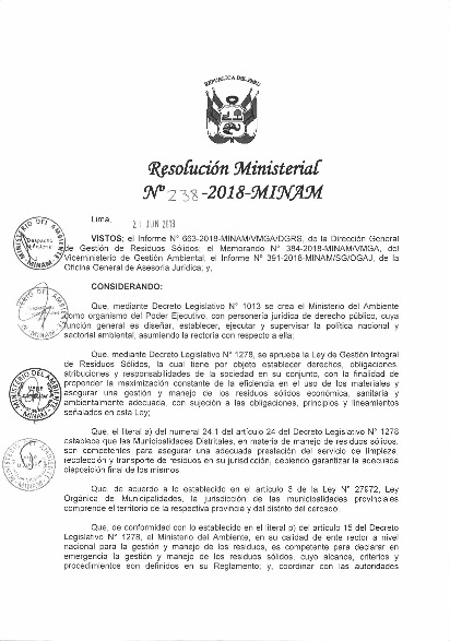 Resulución Ministerial n°238 -2018-MINAM