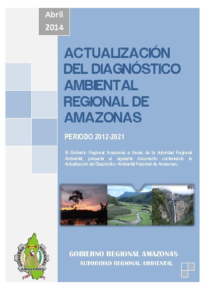 El Diagnostico Ambiental Regional 2012-2021, es un instrumento de gestión ambiental que tiene como objeto identificar, describir y analizar sobre los principales problemas ambientales y una caracterización de la situación ambiental actual; ha sido socializado y aprobado en la Segunda Reunion Ordinaria de la Comisión Ambiental Regional CAR Amazonas, llevada a cabo en la localidad de Jumbilla el 26 de abril del 2013.