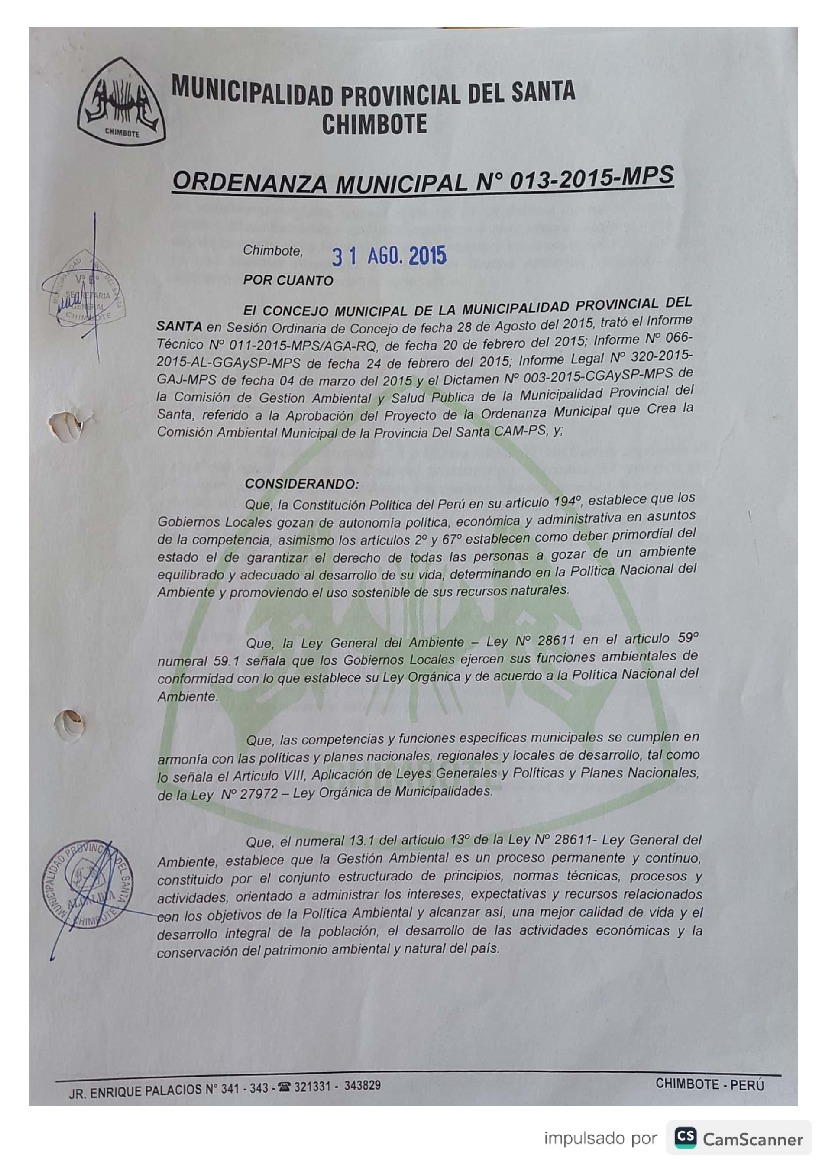 Se crea la Comisión Ambiental Municipal de la Provincia del Santa (CAM-PS)