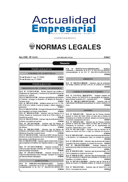Diario El Peruano, publica la Ordenanza Regional que crea el Sistema de Información Ambiental Regional de Puno (Pag. 96)