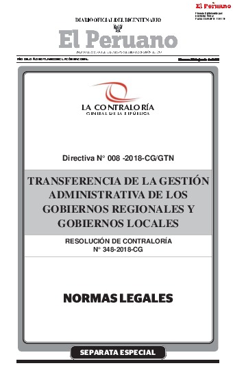 TRANSFERENCIA DE LA GESTION ADMINISTRATIVA DE LOS GOBIERNOS REGIONALES Y GOBIERNOS LOCALES N° 348-2018-CG
