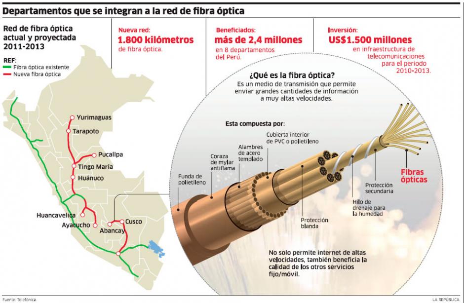 La Agencia de Promoción de la Inversión Privada (ProInversión) informó hoy que hay seis empresas, entre ellas una colombiana y una estadounidense, que han manifestado su interés de participar en la licitación de la Red Dorsal Nacional de Fibra Optica, que está prevista para el 31 de octubre próximo.Se trata de la Red Dorsal Nacional de Fibra Optica: Cobertura Universal Norte, Cobertura Universal Sur y Cobertura Universal Centro.El jefe de Proyectos en Telecomunicaciones de ProInversión, Jesús Marroquín, señaló que las empresas que operan en el mercado local no podrán participar en dicha licitación.“Los operadores clásicos no podrán participar porque no es una banda, es tener fibra óptica a 180 capitales de provincias”, anotó.El proceso de promoción de la inversión privada del proyecto consiste en el desarrollo de la Banda Ancha y masificación de la fibra óptica en zonas rurales y lugares de preferente interés social del país.Este proyecto implica la instalación, operación y mantenimiento de aproximadamente 13,400 kilómetros de fibra óptica, para conectar a 22 capitales de región y 180 capitales de provincia del país.También permitirá dar servicios de telefonía pública, telefonía de abonados y acceso a Internet a 782, 90 y 758 centros poblados, respectivamente.