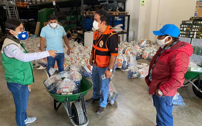 Sr. Fredy Moises Soriano Leandro, Alcalde de Allauca, Provincia de Yauyos, viene recibiendo las canastas básicas, por parte de la Oficina Regional de Defensa Civil