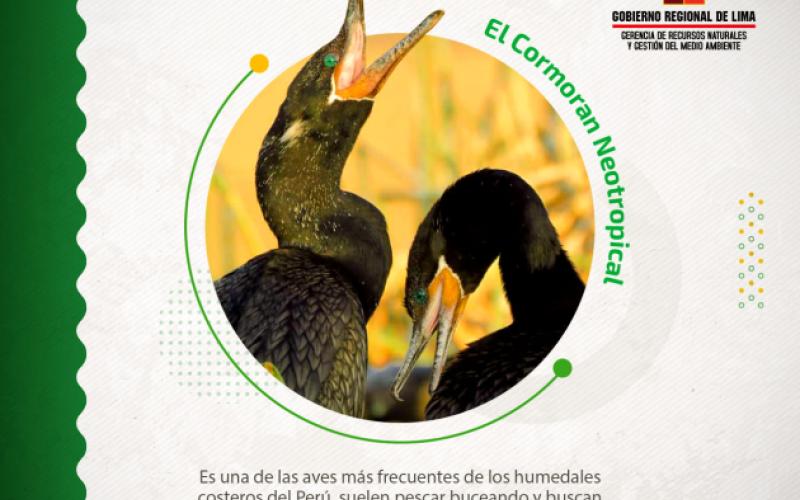 El Cormoran Neotropical: Esta ave es una de las más frecuentes de los humedales costeros del Perú, suelen pescar buceando en el cuerpo de agua del Área de Conservación Regional Albufera de Medio Mundo, en busca de peces como la tilapia, carpas o lizas para alimentar a sus crías