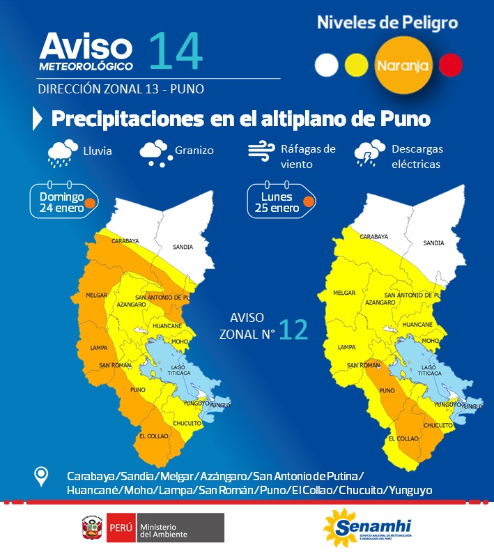 AVISO METEOROLÓGICO 14 PARA LA REGIÓN DE PUNO. Precipitaciones en el Altiplano de Puno