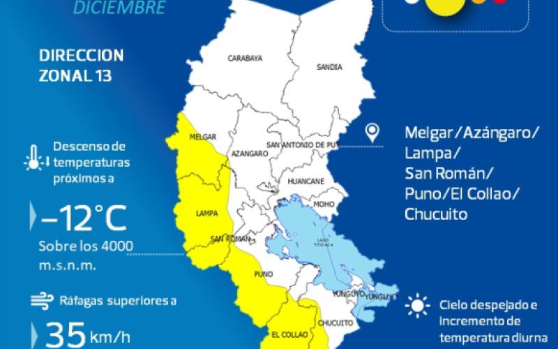Descenso de temperatura nocturna en Puno, del jueves 10 al viernes 11 de Diciembre.
