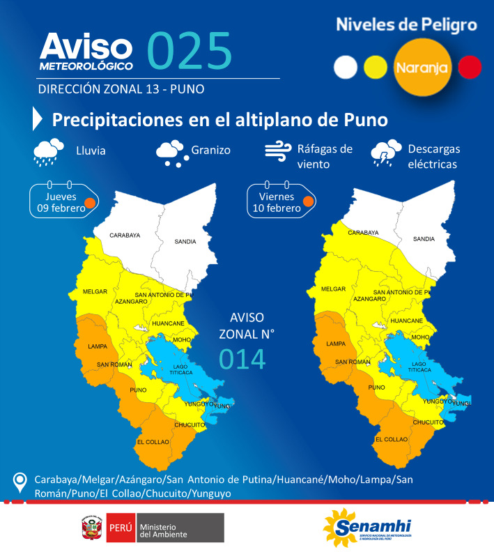 AVISO METEOROLOGICO DE PRECIPITACIONES EN EL ALTIPLANO DE PUNO PARA LE 09 Y 10 DE FEBRERO 2023.