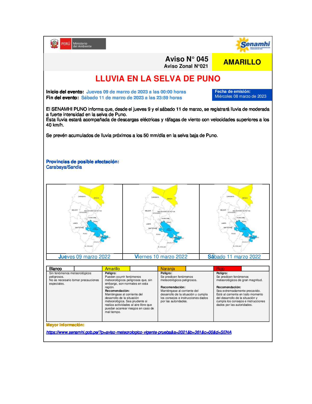 Aviso meteorológico N° 045 - 021 DZ13