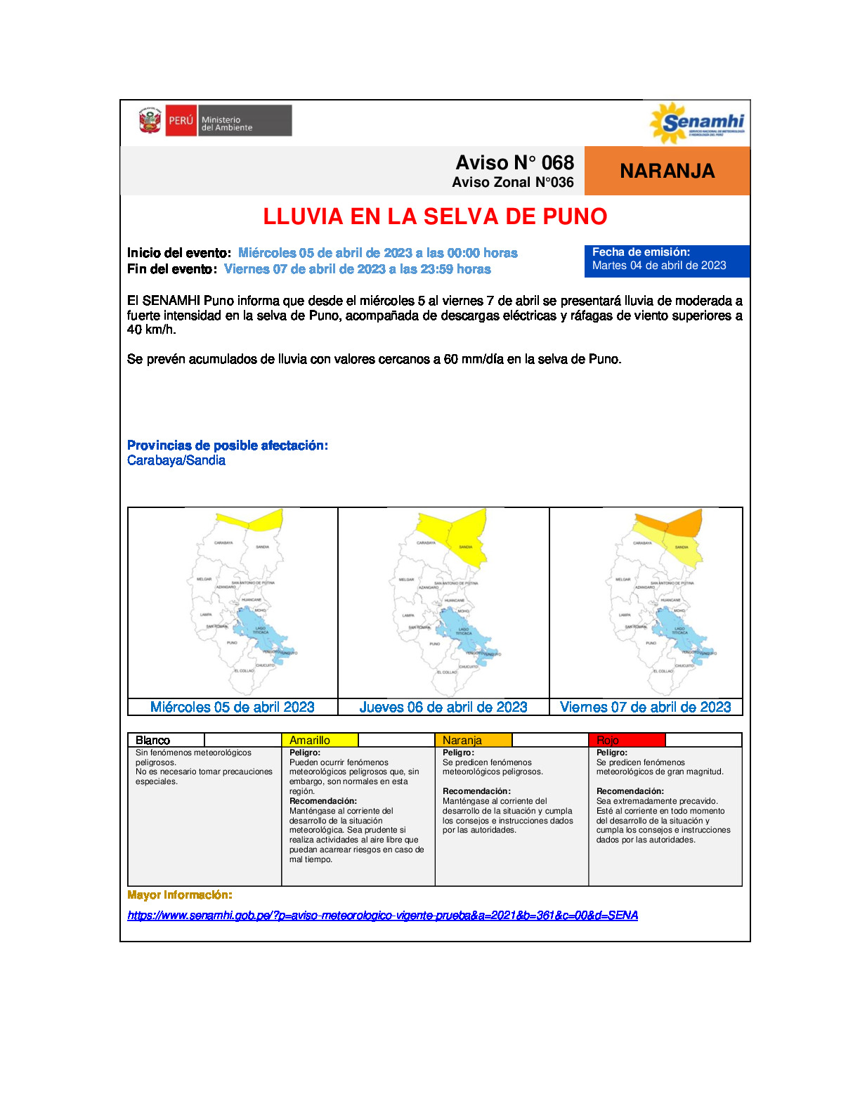 Aviso meteorológico N° 068-036 DZ13
