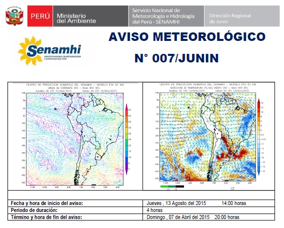 Aviso Meteorológico N°007-2015-JUNIN