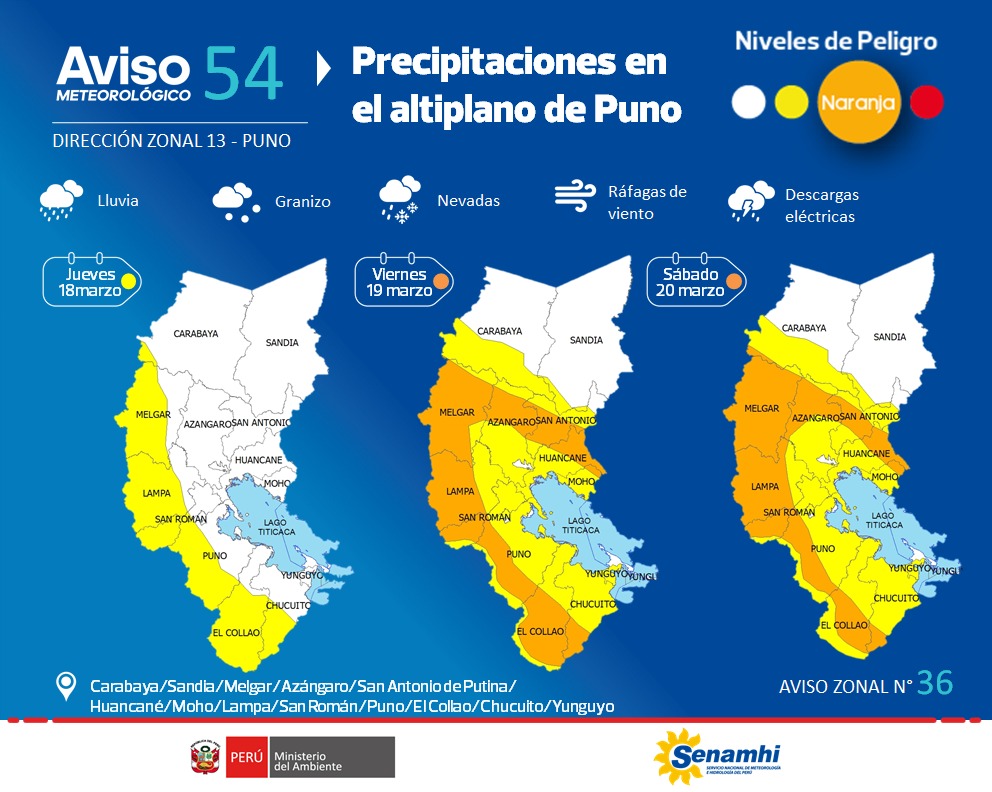 AVISO METEOROLOGICO DE PRECIPITACIONES EN EL ALTIPLANO DE PUNO - 18 AL 20 MARZO 2021