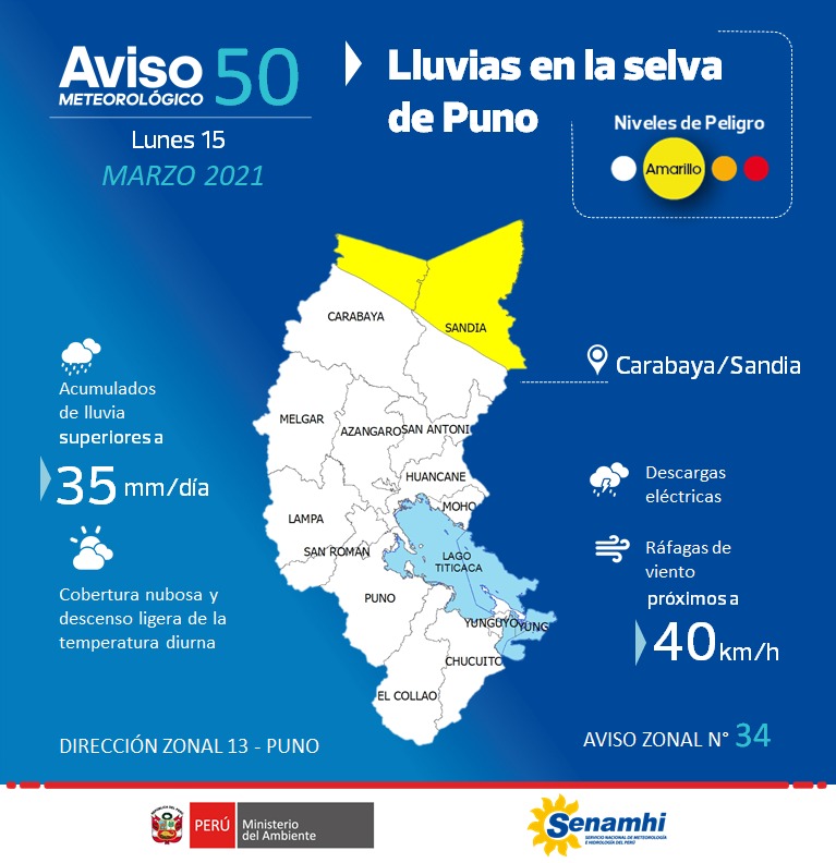 Lluvias en la Selva de Puno, lunes 15 de marzo.