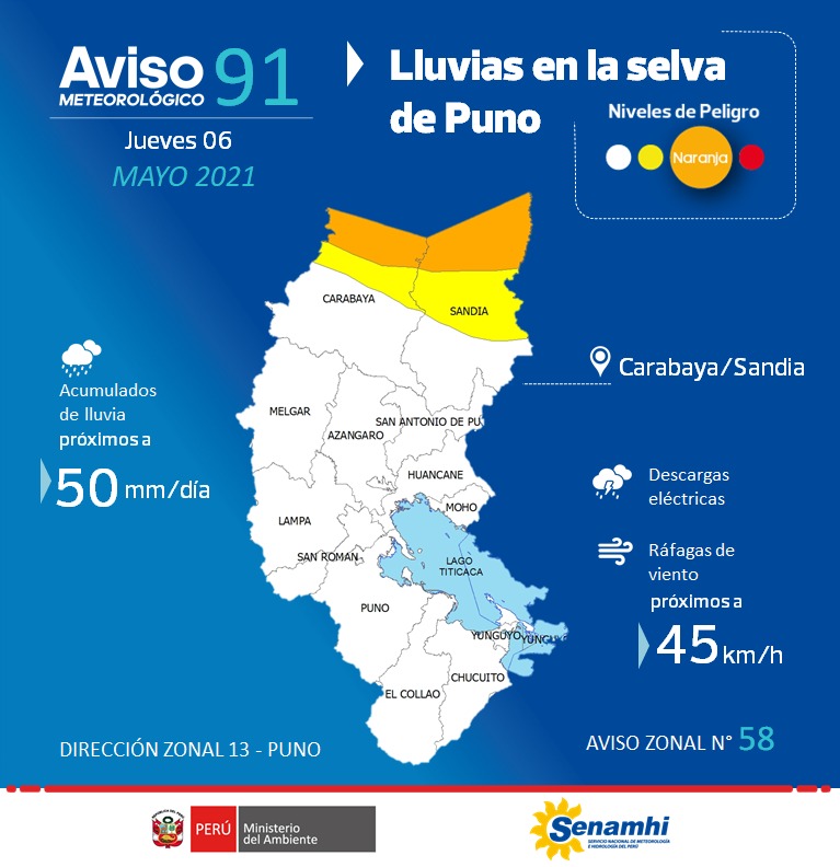 AVISO METEOROLOGICO PARA LA REGION DE PUNO.