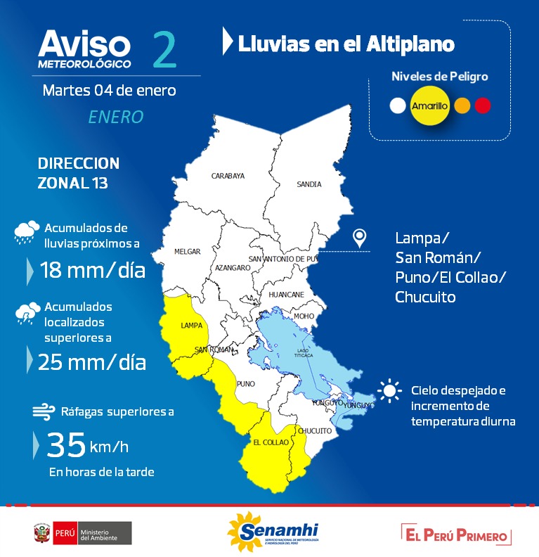 AVISO METEOROLÓGICO PARA LA REGIÓN DE PUNO - LLUVIAS EN EL ALTIPLANO