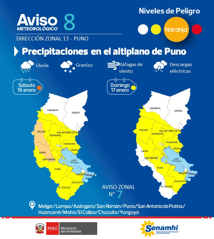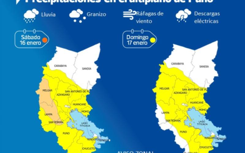 Lluvias en el altiplano de Puno, del sábado 16 al domingo 17 de enero