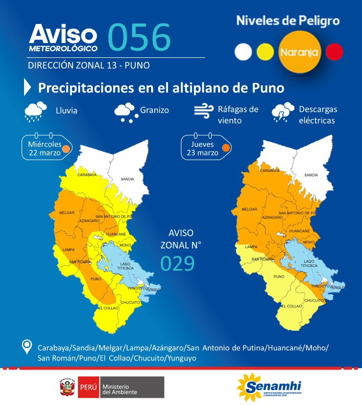 AVISO METEOROLOGIOCO DE PRECIPITACIONE EN EL ALTIPLANO DE PUNO 22 Y 23 DE MARZO