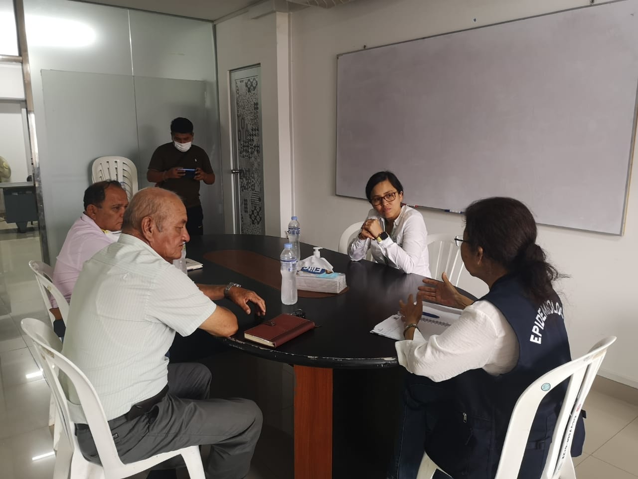 Con la finalidad de apreciar y coordinar las acciones preventivas contra el Coronavirus (Covid – 19). Gerenta de Recursos Naturales y Gestión del Medio Ambiente, Blga. Karina Takahashi Santos, junto al alcalde de la provincia de #Cañete, C.P.C. Segundo Díaz y el Sub Gerente de la UELS , Ing. Miguel Ángel Melgarejo, sostienen una reunión con la Directora Ejecutiva de la Red de Salud Cañete – Yauyos, M.C. Alicia Takemoto Kawamoto.