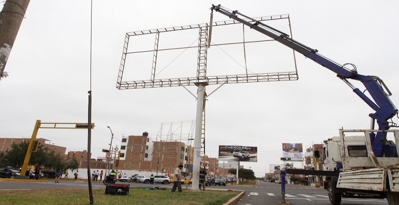 Continuando con los operativos para recuperar los espacios públicos y mejorar el ornato de la ciudad, la Municipalidad Provincial de Trujillo (MPT) mediante la Gerencia de Desarrollo Urbano procedió a retirar dos paneles que se encontraban obstruyendo la visibilidad en la vía pública y generaban contaminación visual.