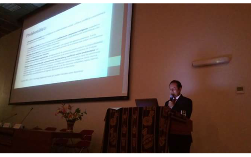 Gobernador de Apurimac Wilber Venegas, dando coferencia magistral sobre"Desarrollo de Economias Sostenibles en Comunidades de Montaña". Cusco. Abril. 2017