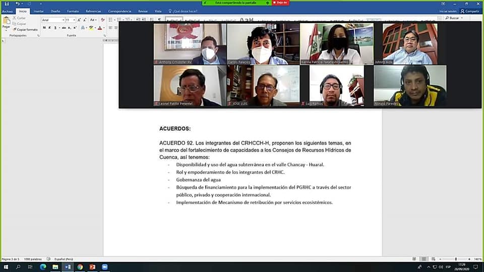 La Sesión de trabajo, también permitió proponer temas de capacitación, en el marco del fortalecimiento de capacidades a los Consejos de Recursos Hídricos de Cuenca, que promueve la Autoridad Nacional del Agua. Además, desde el mes de octubre se realizarán capacitaciones virtuales para los actores de la cuenca en temas como seguridad hídrica, mecanismos de retribución por servicios ecosistémicos, inversión pública en infraestructura hidráulica, entre otros.