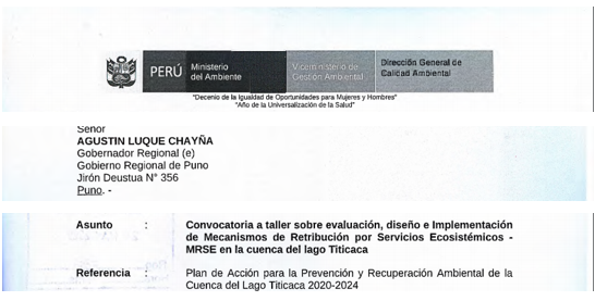 Convocatoria a taller sobre evaluación, diseño e Implementación de Mecanismos de Retribución por Servicios Ecosistémicos - MRSE en la cuenca del lago Titicaca