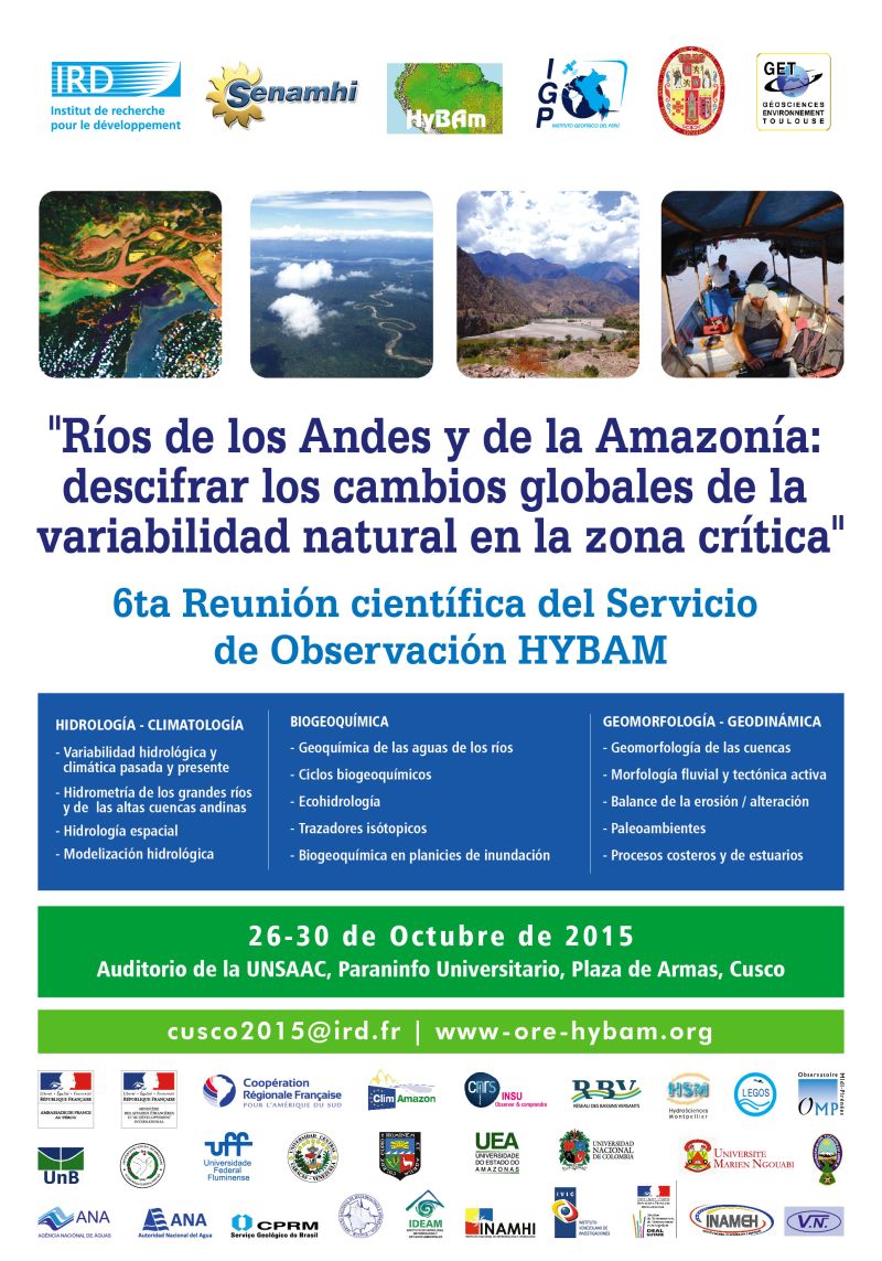A algunos meses de la COP21 de París, este sexto encuentro internacional del Observatorio HYBAM, etiquetado COP21, se articulará en torno al tema "Ríos de los Andes y de la Amazonía: descifrar los cambios globales de la variabilidad natural en la zona crítica."