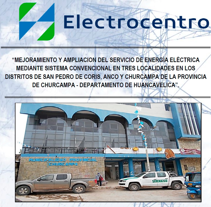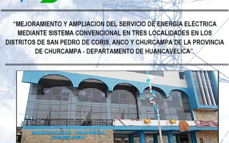 MEDIANTE SISTEMA CONVENCIONAL EN TRES LOCALIDADES EN LOS DISTRITOS DE SAN PEDRO DE CORIS, ANCO Y CHURCAMPA DE LA PROVINCIA DE CHURCAMPA - DEPARTAMENTO DE HUANCAVELICA”, con la finalidad de mejorar sus instalaciones, mejorar la calidad del suministro de energía eléctrica y cumplir con los requerimientos de las normas vigentes, por lo que decide efectuar el presente estudio que servirá para Remodelar las Redes en Media y Baja Tensión en la Provincia de Churcampa y en los distritos de Churcampa, San Pedro de Coris y Anco Pertenecientes al departamento de Huancavelica.