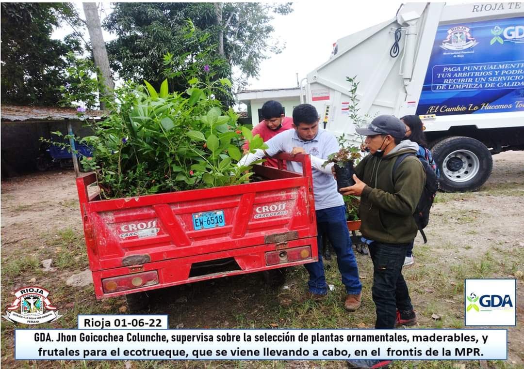 En el frontis de la Municipalidad Provincial de Rioja, se vino desarrollando una campaña de "ecotrueque", que consiste en un cambio, el vecino entrega residuos sólidos, y recibe una planta ornamental, maderable, o frutal por parte de la Gerencia de Desarrollo Ambiental.