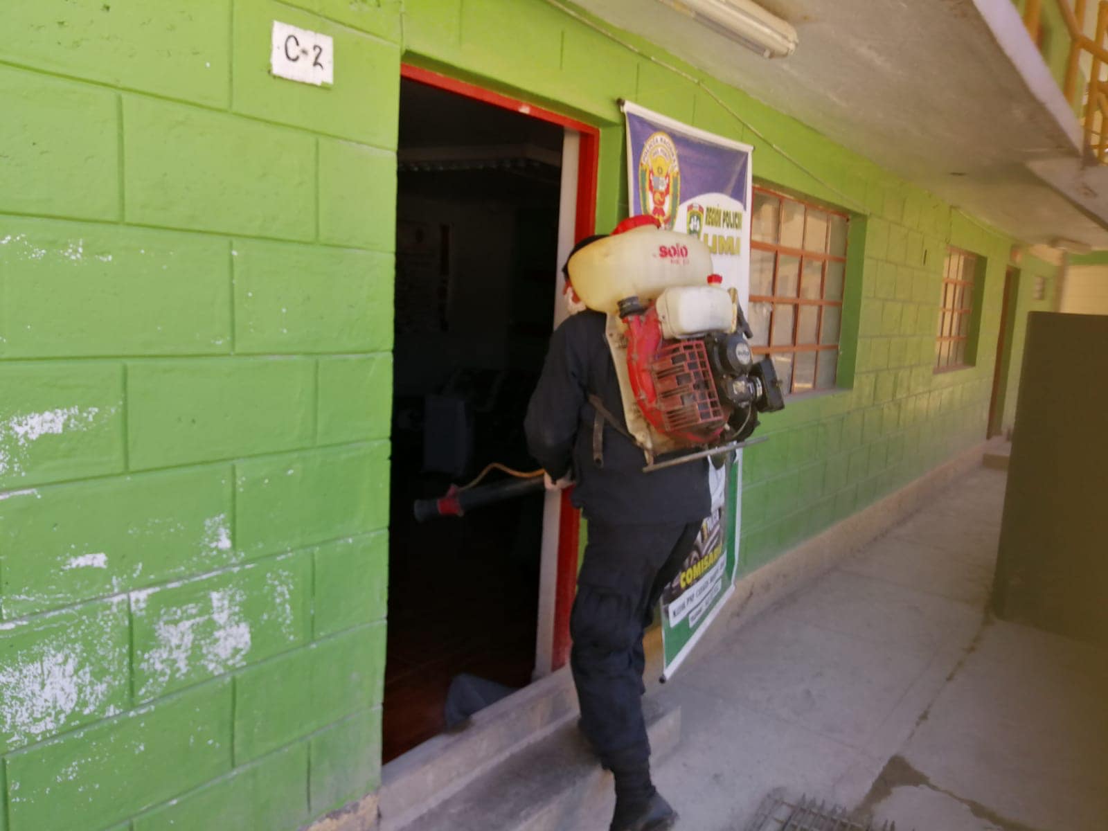 Se procede con la desinfección de la Comisaria PNP Uchuchagua, Provincia de Oyon.