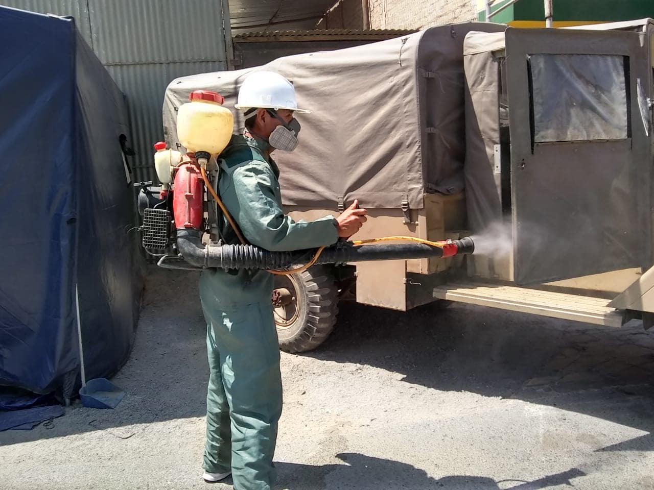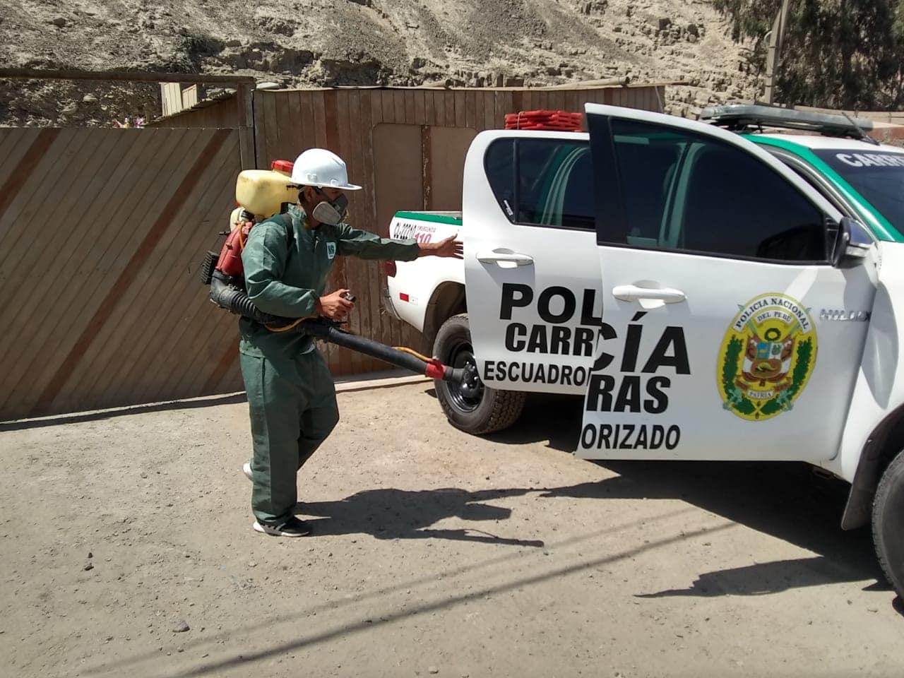 Se procede con la desinfección del Destacamiento de Protección de Carreteras Yangas, Provincia de Canta.