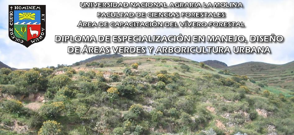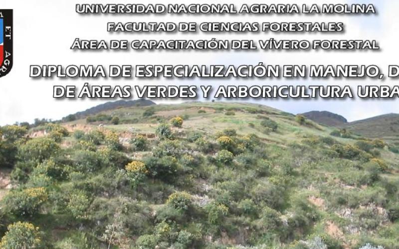 El área de capacitación del Vivero Forestal de la Facultad de Ciencias Forestales de la Universiad Nacional Agraria La Molina ha venido ofreciendo el Diploma de Especialización en Manejo, Diseño de Áreas Verdes y Arboricultura Urbana desde el año 2008 y por tres años consecutivos, impartiendo una serie de conocimientos en campos fundamentales relacionados directa e indirectamente con: el paisaje, las especies, los suelos, el agua, el aire y la urbe.